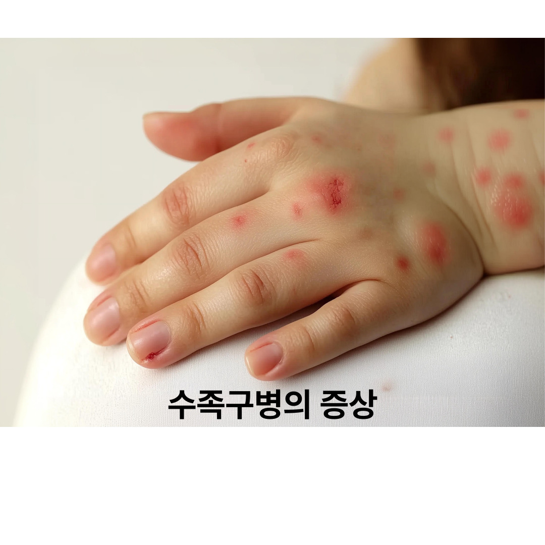 대표적인 증상으로는 발열, 식욕 감퇴, 피로감이 있으며, 이후 손바닥, 발바닥, 입안 등에 작은 수포성 발진이 생깁니다. 물집은 통증을 유발하며, 특히 입안에 생길 경우 음식 섭취가 어려워질 수 있습니다. 일부 심한 경우 뇌수막염, 심근염 등의 합병증이 발생할 수 있으므로 주의가 필요합니다.